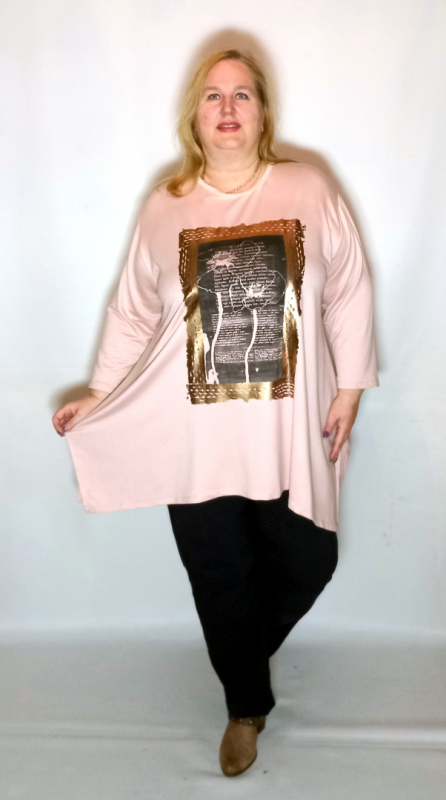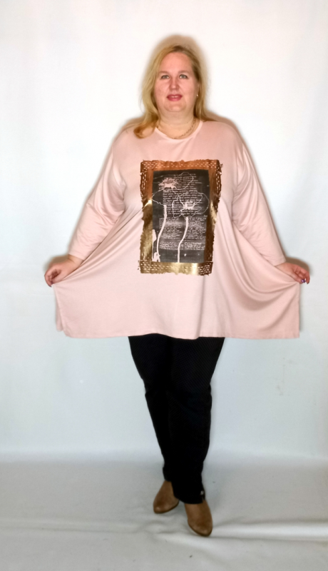 Удлиненная туника А-силуэта выполнена из высококачественного, трикотажного полотна с 95% содержанием вискозы.