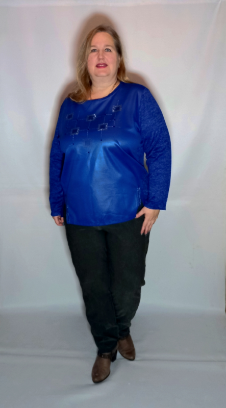 Тепленький и оригинальный блузон выполнен из сочетаний трикотажа по д кожу ( средней плотности, умерено эластичный, гладкий с наружи, внутри как обычный трикотаж) и ангоры меланж( мягонькая, эластичная, не рыхлая).