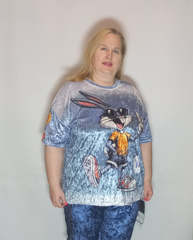 Шикарная  туника- футболка выполнена из мягкого, очень эластичного мраморного велюра с рисунком амбре и  тканным принтом.