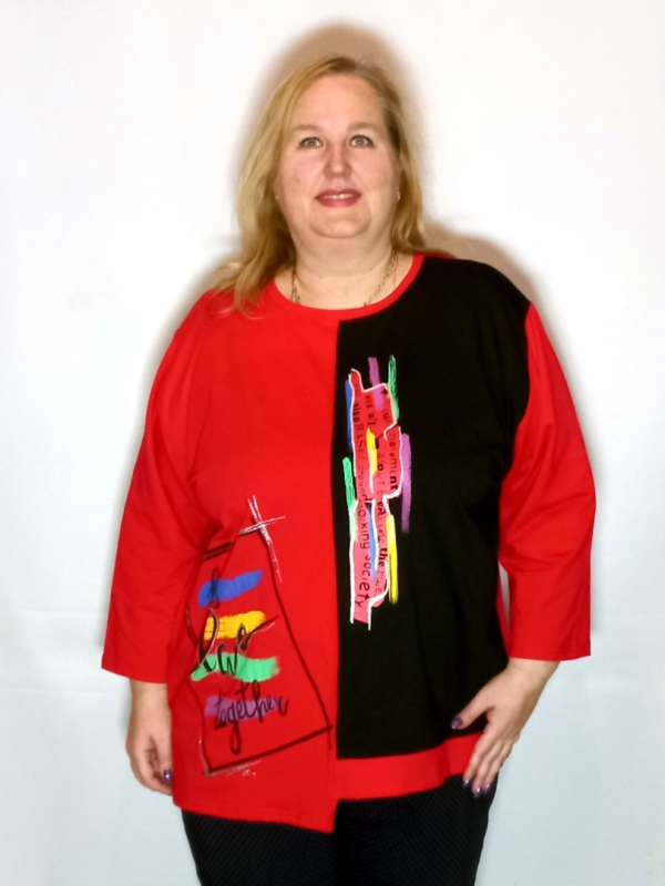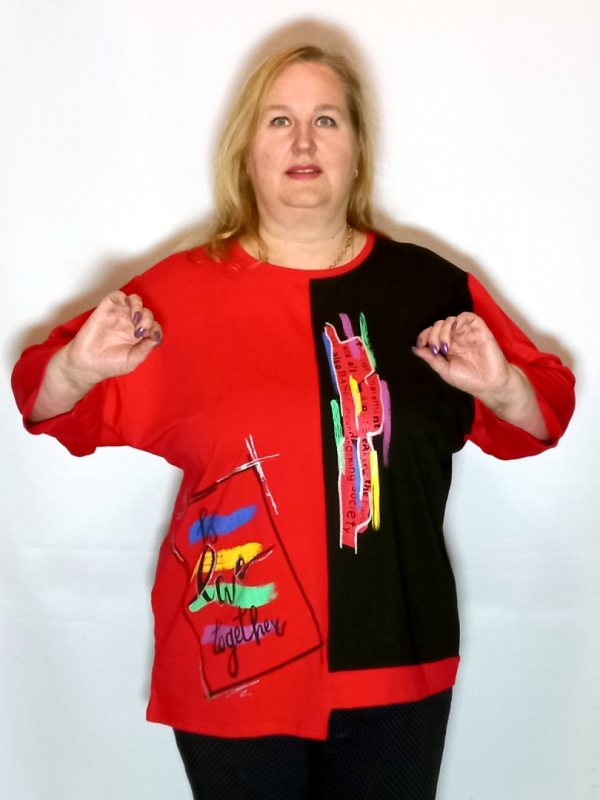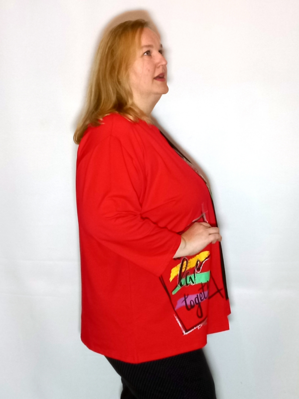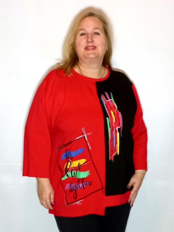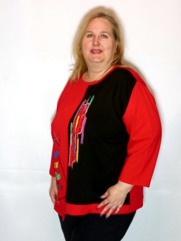 Туника выполнена из более плотного ,хлопкового трикотажа. Приятный к телы, умеренно эластичный за счет спандекса.