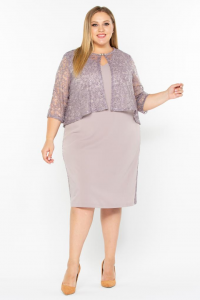 Шикарный, элегантный, нарядный комплект состоит из платья - футляр и кружевного  жакета. Платье из  плательной ткани, плотненькой, не будет выделять неровности фигуры. Есть грудные выточки, спинка по средним швом. Внизу шлица. По боковым швам поверх ткани нашиты вставки из кружева. Платье н тонком эластичном подкладе.