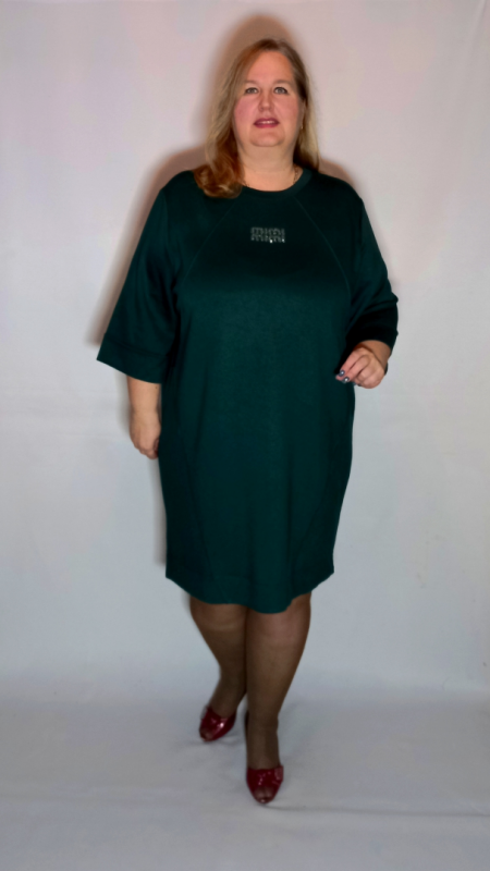 Лаконичное, но элегантное платье туника выполнено из плотного трикотажа. Трикотаж очень приятный  наощупь, плотненький, хорошо скрывает шероховатости фигуры, эластичный.